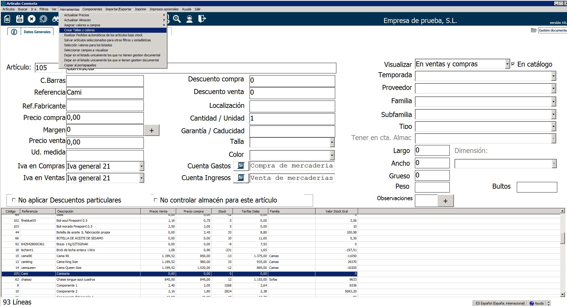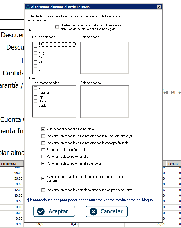 Esta utilidad está pensada para empresas que trabajen en la compra-venta de artículos con tallas y colores, como puede ser ropa, muebles…