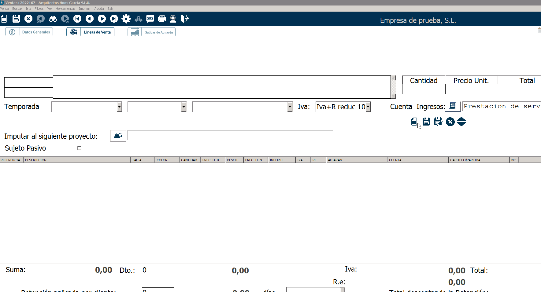 A la hora de crear ventas o compras de artículos con tallas y/o colores, podemos seleccionarlos de la forma habitual, buscando en la base de datos o introduciendo su referencia o código de barras.