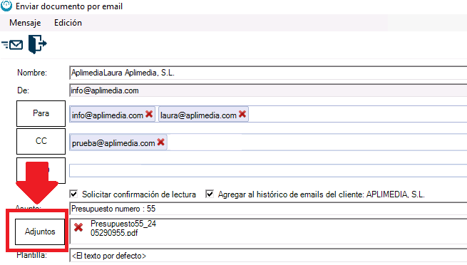 Añadir adjuntos al correo