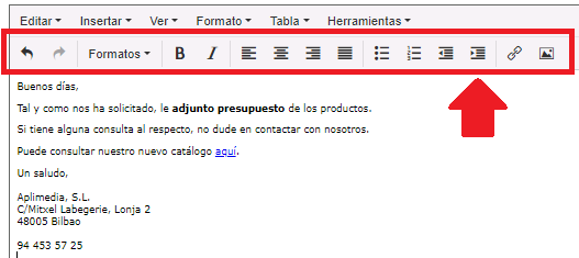 Con el nuevo editor, podremos utilizar los iconos para hacerlo, y veremos en directo cuál va a ser el aspecto de nuestro e-mail.