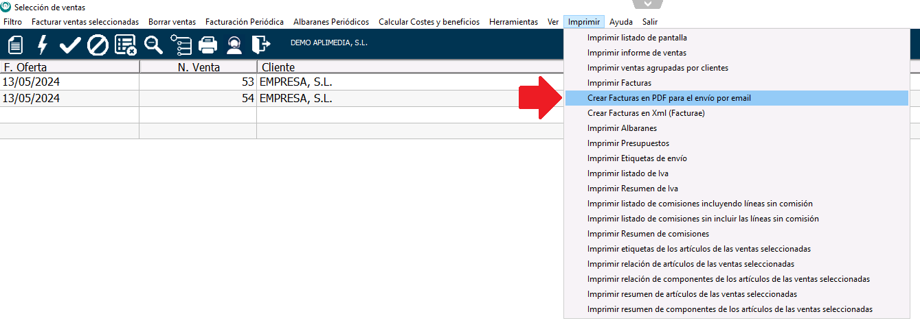 Sois muchos los que llevabais tiempo solicitándonos revisar el proceso de creación de PDFs desde el filtro de Ventas (con la opción Imprimir>Crear facturas en PDF para el envío por e-mail) para hacerlo más rápido.