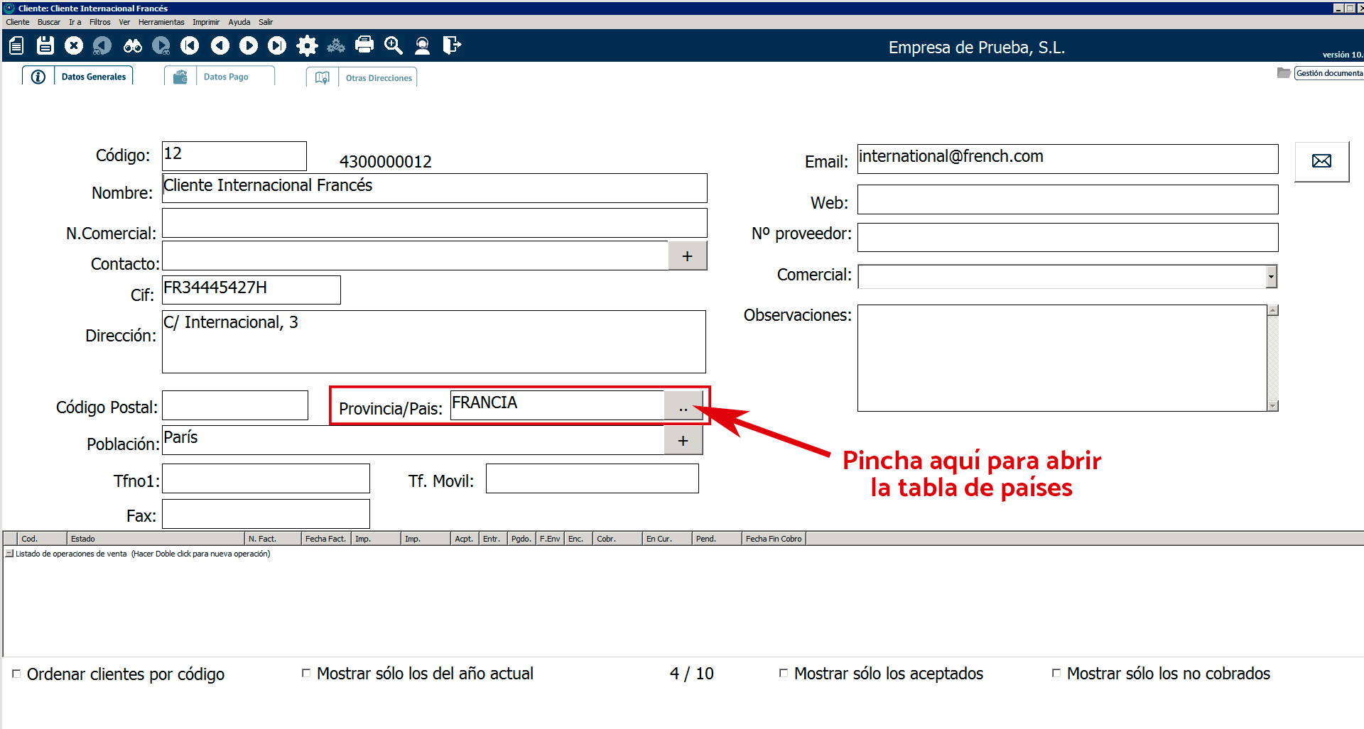 En el campo «Provincia/País» lo ideal es que introduzcas las provincia cuando tu cliente es español y el país cuando es internacional.