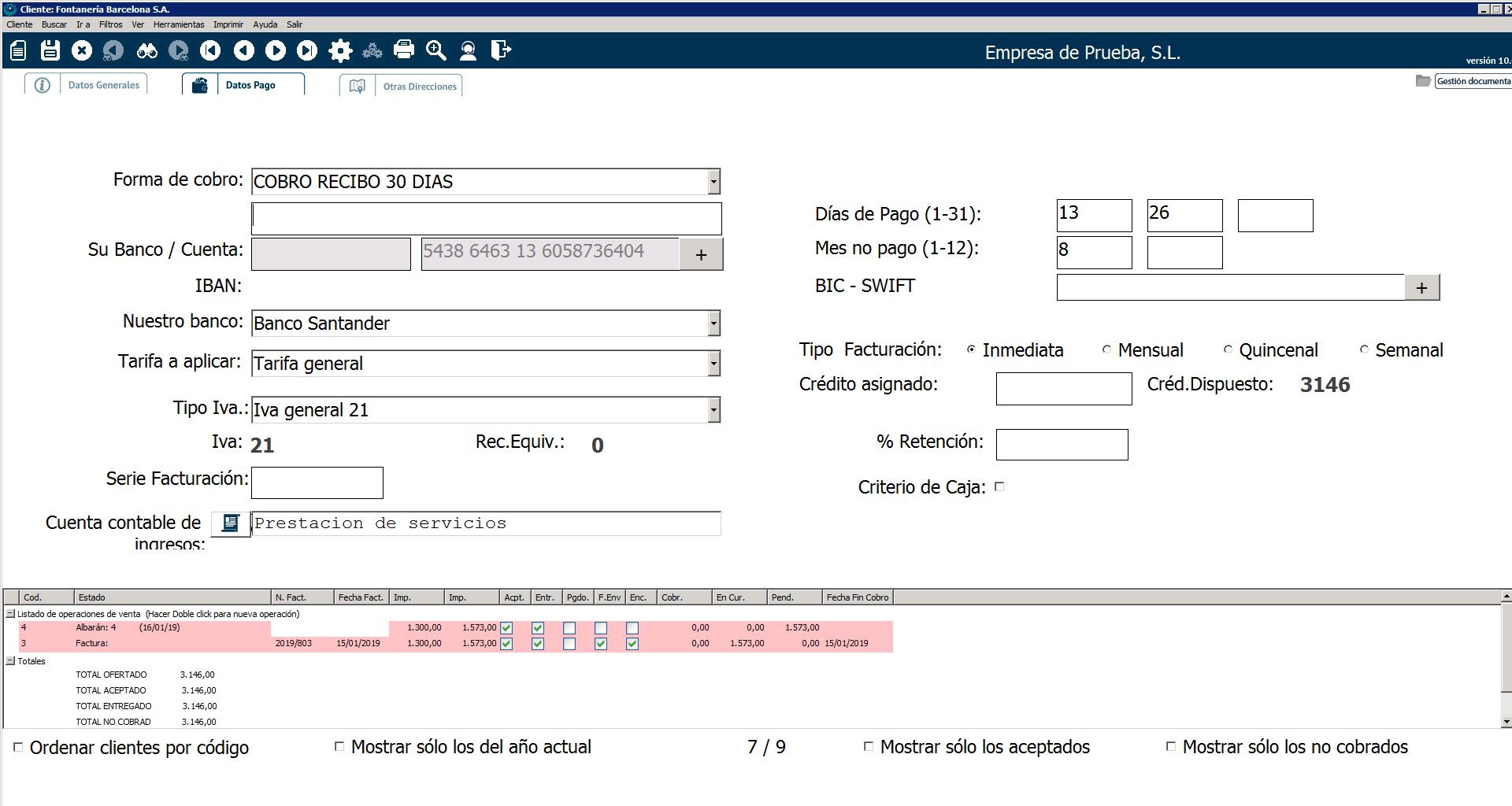 Esa forma de cobro, será la que se seleccionará por defecto cuando le creemos nuevas ventas, si bien podremos modificarla a nivel de cada venta cuando proceda.