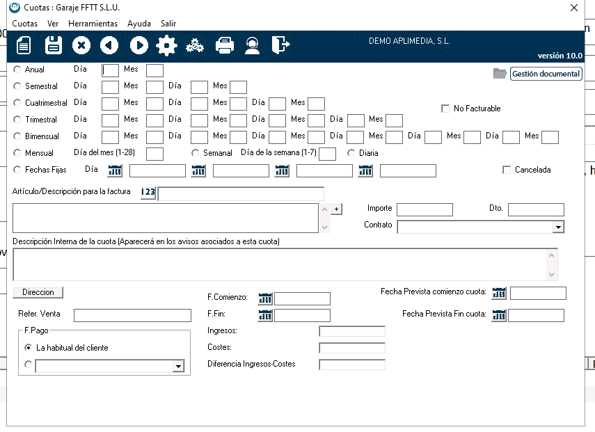 Por defecto, Secre te mostrará un listado de las cuotas del cliente en el que te has situado.
