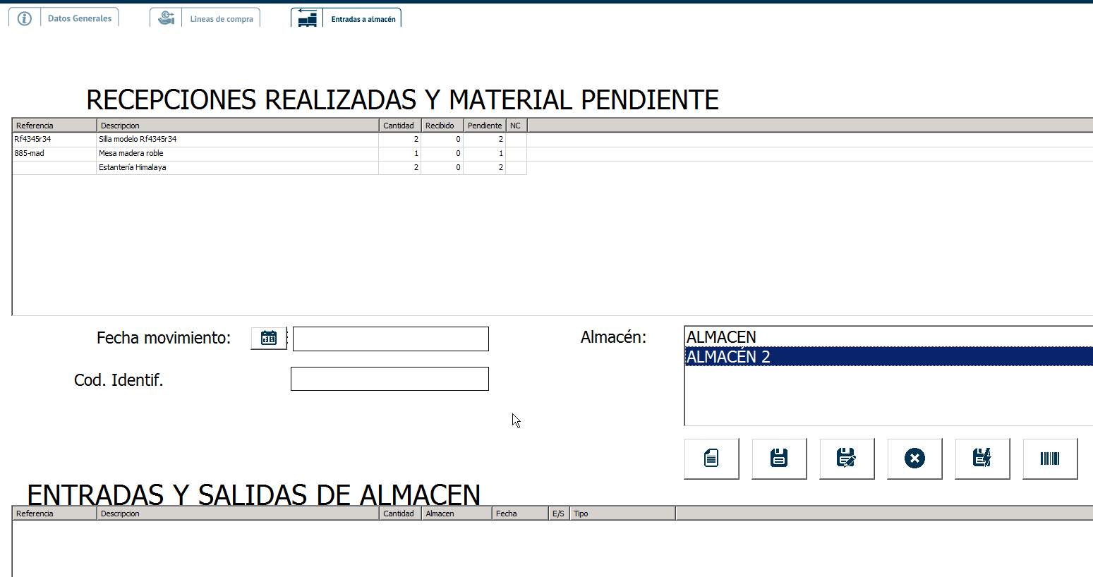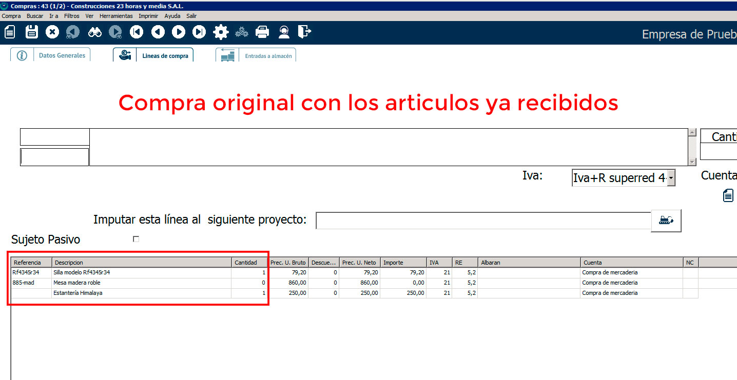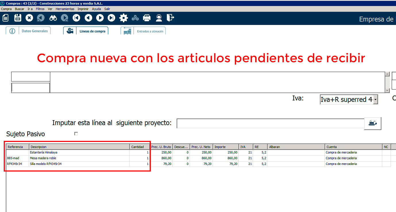 En «Líneas de compra» te aparecerán nada más las unidades que hemos sacado del almacén.