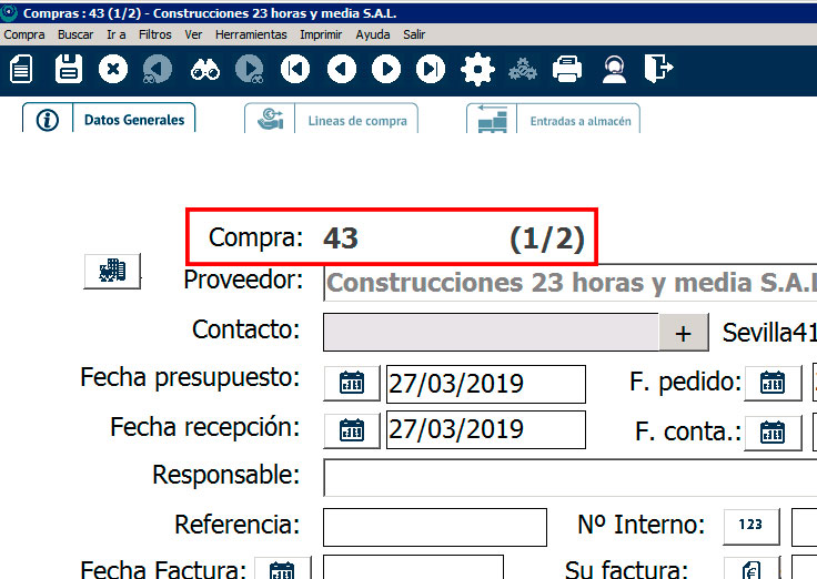 Fíjate también que el número de compra de estas compras que hemos dividido es especial. Además del número habitual nos mostrará (1/2), (2/2), o tantas fracciones como divisiones hayamos hecho de la compra original.