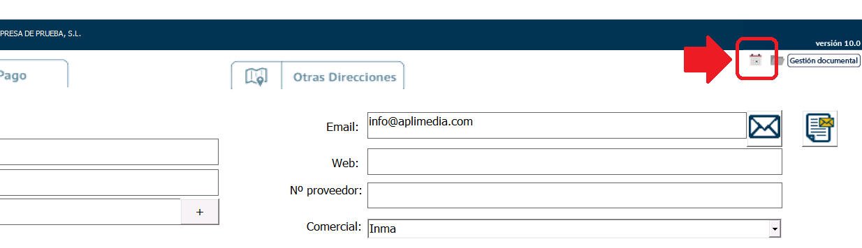 Cuando ya estés en la ficha del cliente en cuestión, haz clic en el icono del calendario que hay en la esquina superior derecha:
