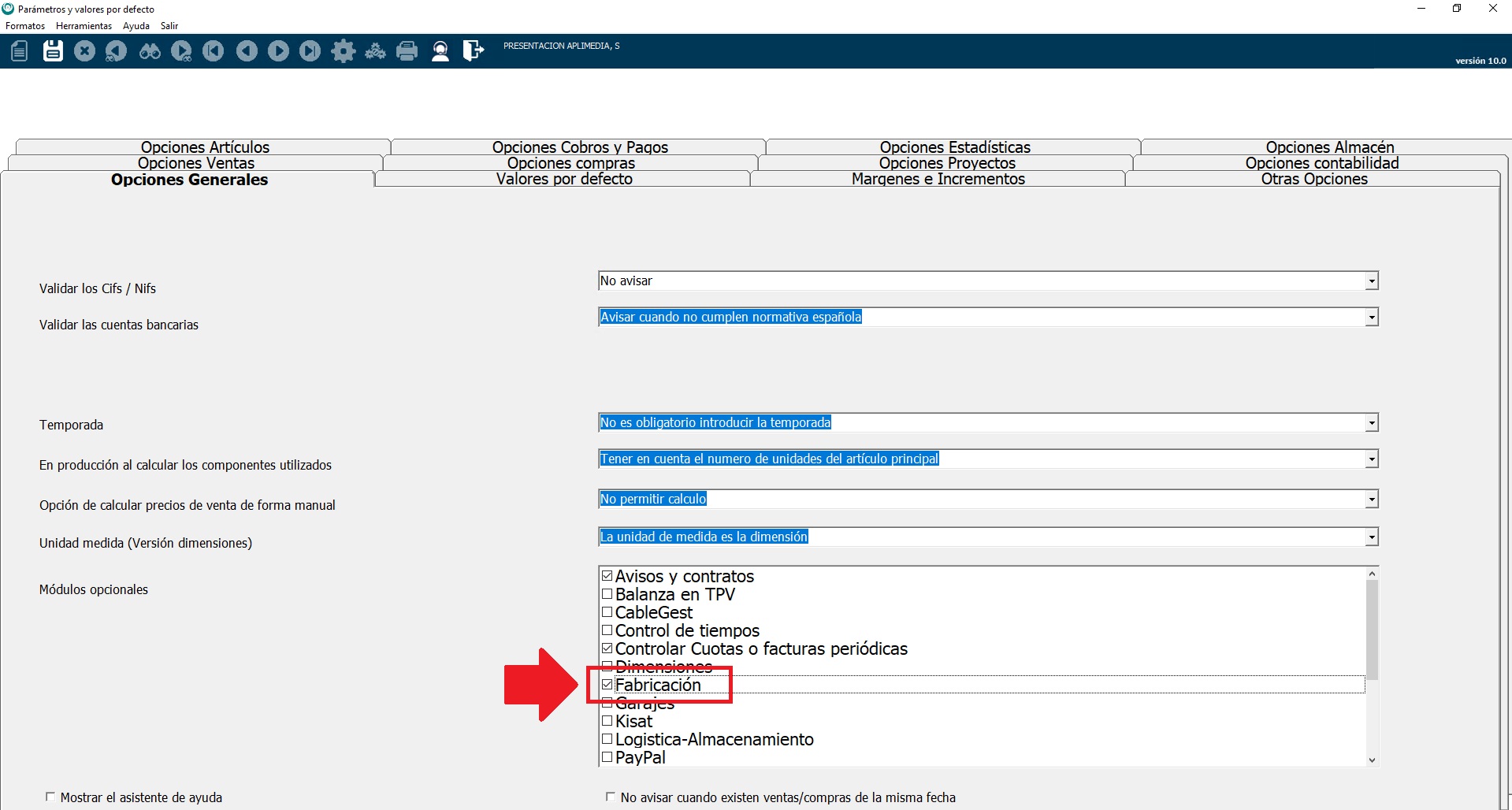 Tienes que marcar la opción Fabricación dentro del apartado Módulos Opcionales.