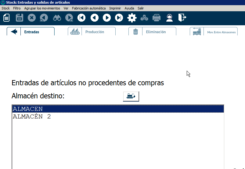 Para ello, desde la pantalla principal del programa, ve a Herramientas>Control de almacén y producción.