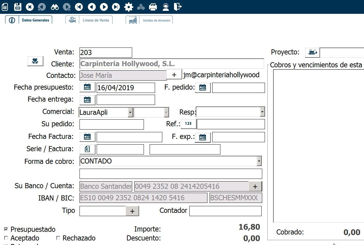 Si asignamos una fecha de entrega a esa venta el programa nos va a preguntar, como es habitual, si queremos dar salida de almacén de los artículos de la venta. Lo más habitual es que digamos que sí.