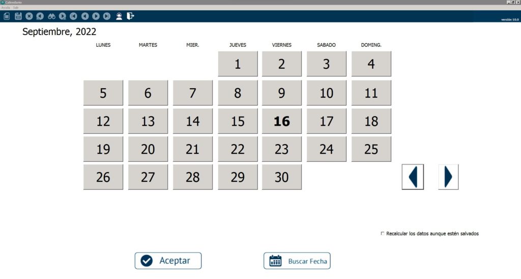 Una vez dentro del módulo, pincharemos en la fecha a la cual queremos ver la situación de la empresa. Puede ser la fecha de hoy, una fecha anterior o una fecha posterior: