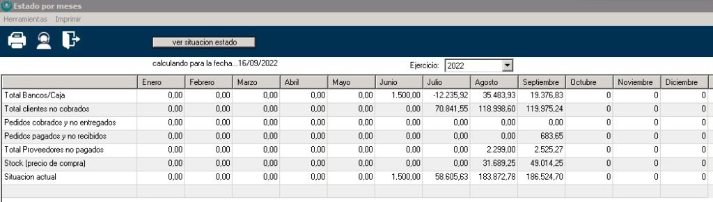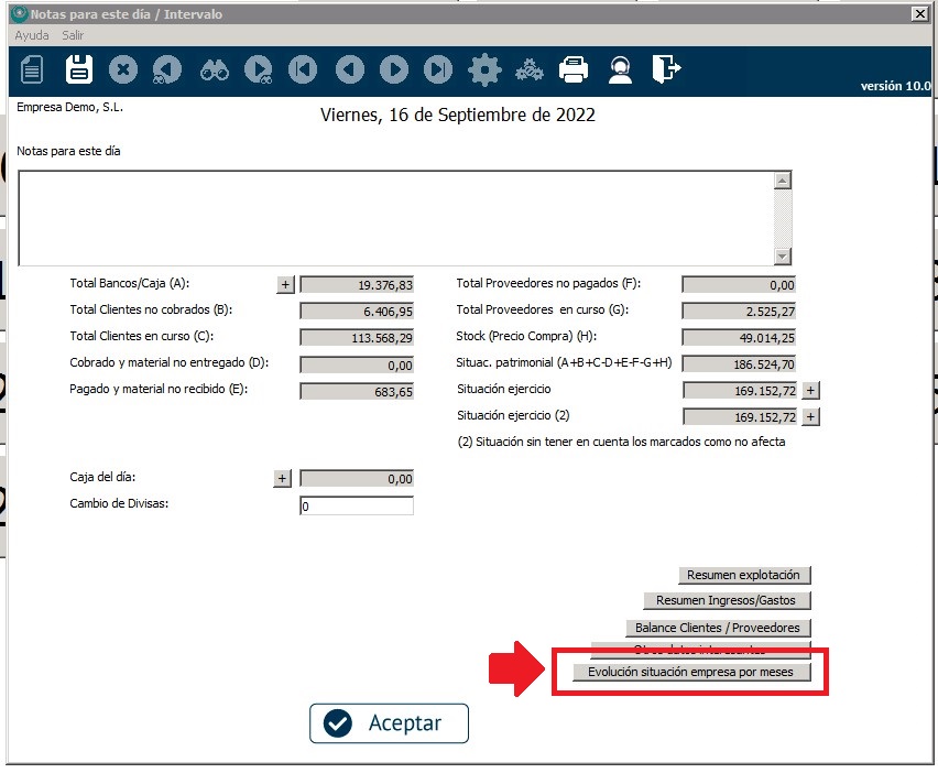 A continuación haremos clic en el botón Evolución situación empresa por meses: