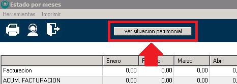 Pero, además, a partir de este informe podemos generar otro informe interesante en el que podremos ver la situación patrimonial de la empresa. Para acceder a él, desde la parte superior de la pantalla, haremos clic en el botón «Ver situación patrimonial«: