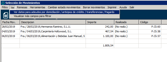 Ahora solo queda escoger los criterios que queremos utilizar para sacar el listado de movimientos a remesar. Los tres criterios más relevantes para sacar el listado son: