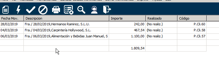 - Realizado: como es lógico, los movimientos a remesar deberán estar NO realizados.
