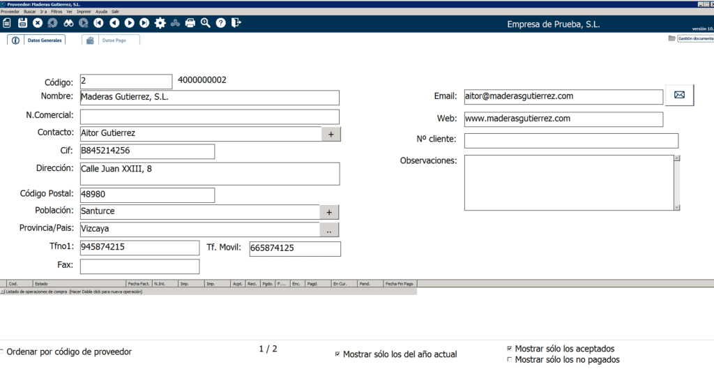 Como siempre, cuando hayas rellenado todos los datos de los que dispongas, no olvides Guardar para registrar al nuevo proveedor en tu base de datos.