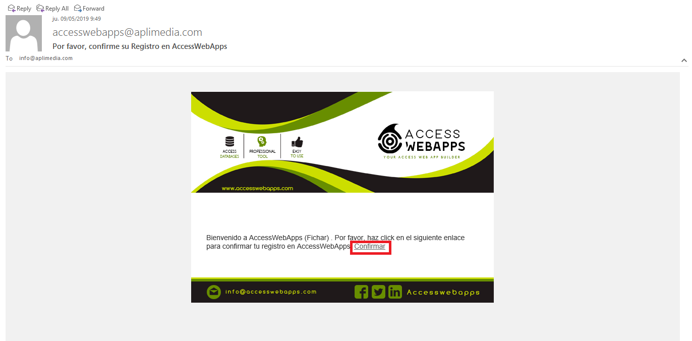 Acto seguido, recibirás un correo en el e-mail que hayas indicado.