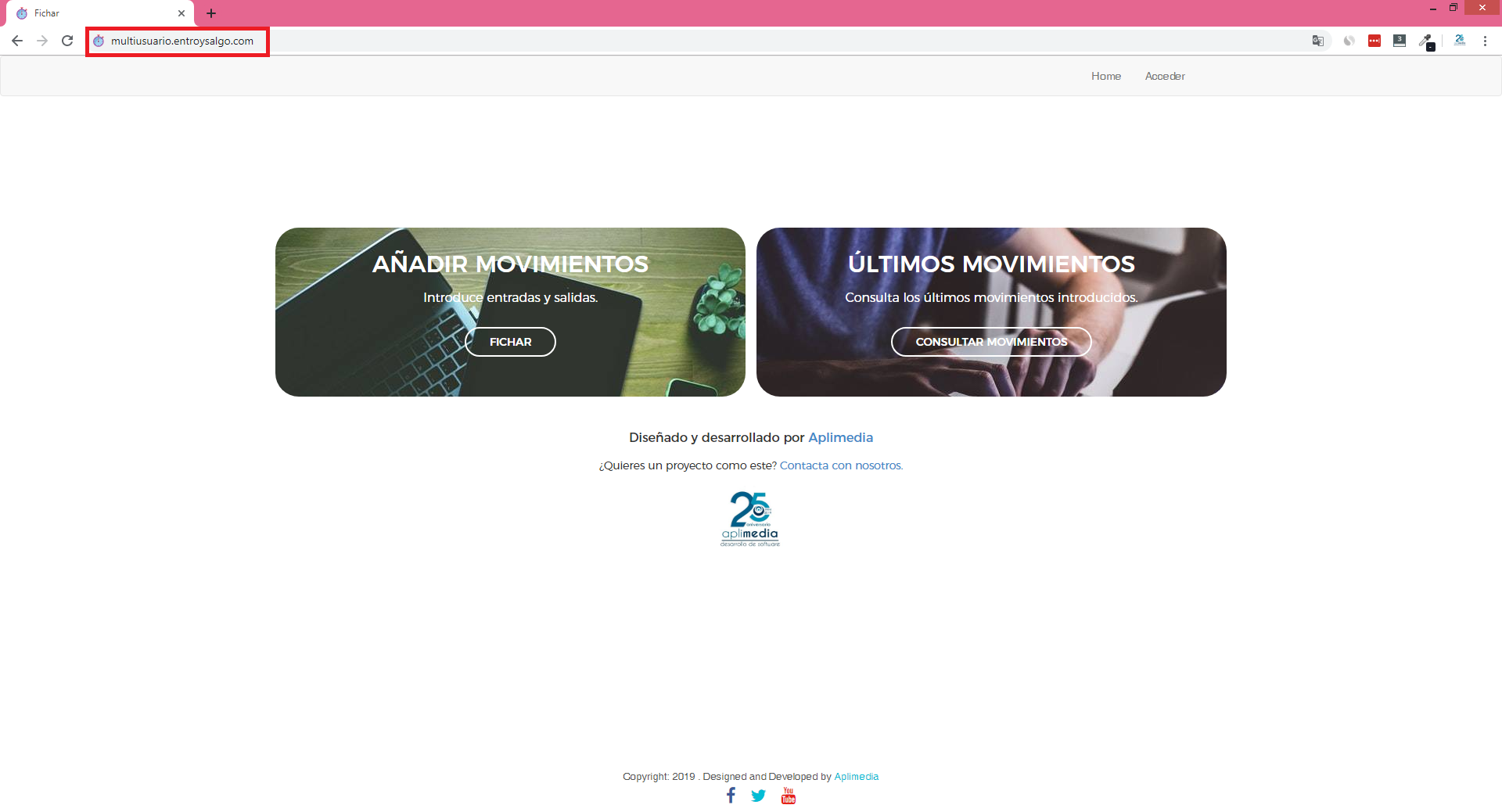 Esta versión solo permite fichar y consultar los últimos movimientos y para acceder hay que visitar la página web multiusuario.entroysalgo.com.