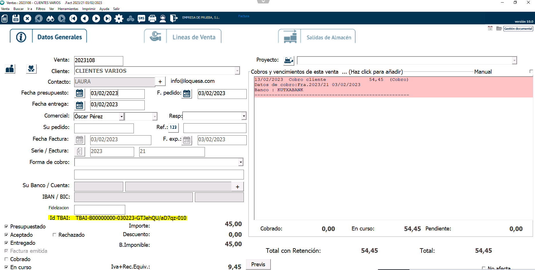 Además, en la parte inferior verás escrito el ID-TBAI. Este es el identificador del fichero que se ha generado para hacienda.