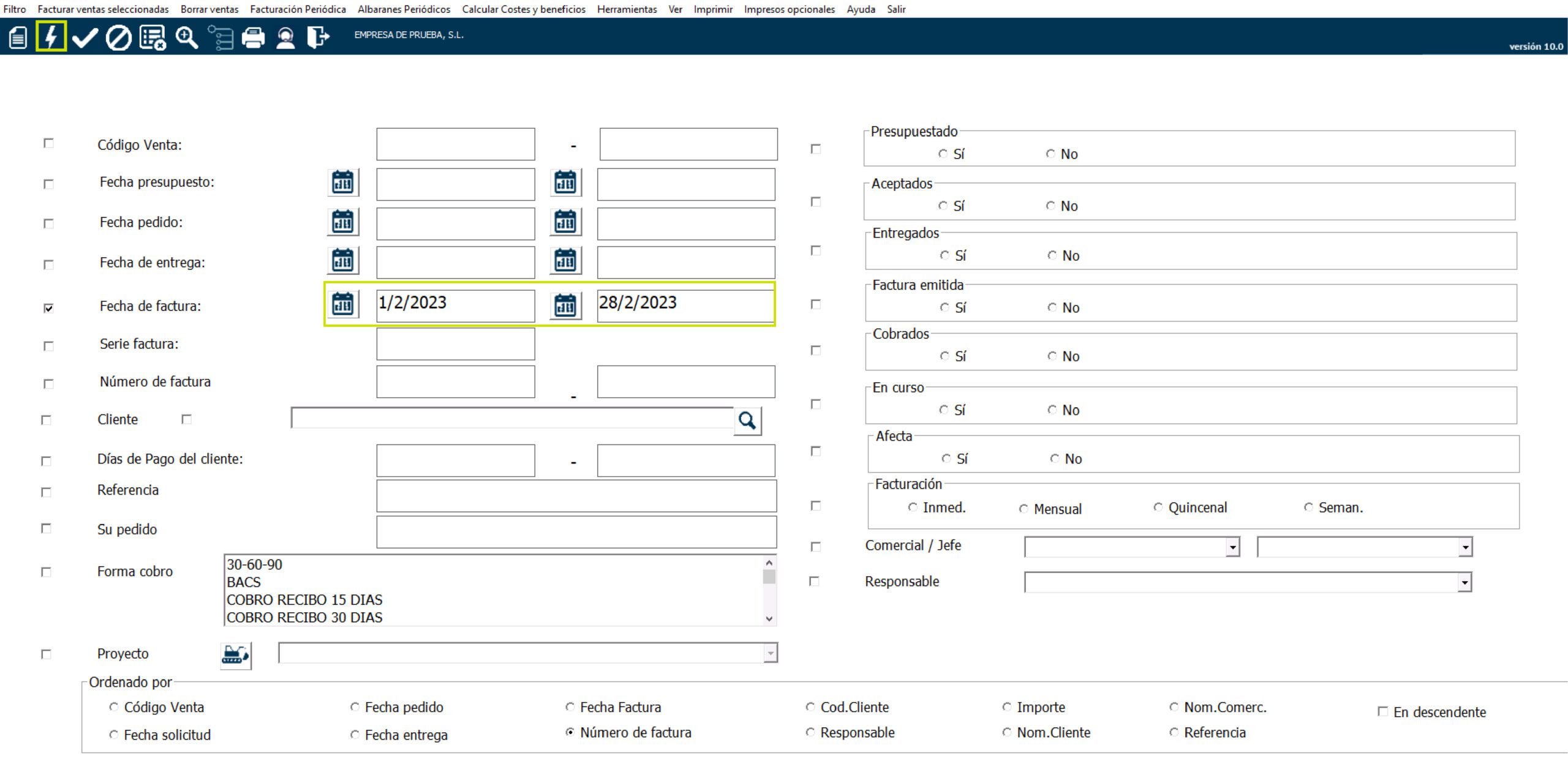 Puedes ejecutar un filtro de las facturas que has emitido en un periodo.