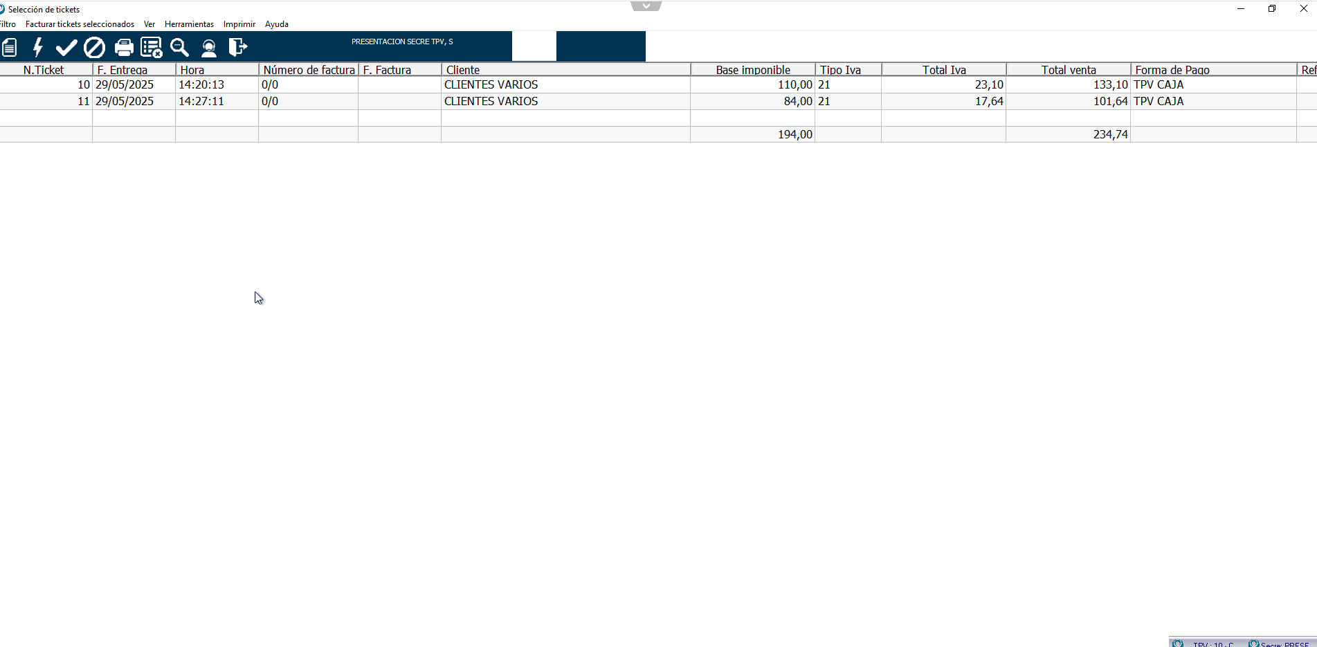 Facturar varios tickets a la vez: