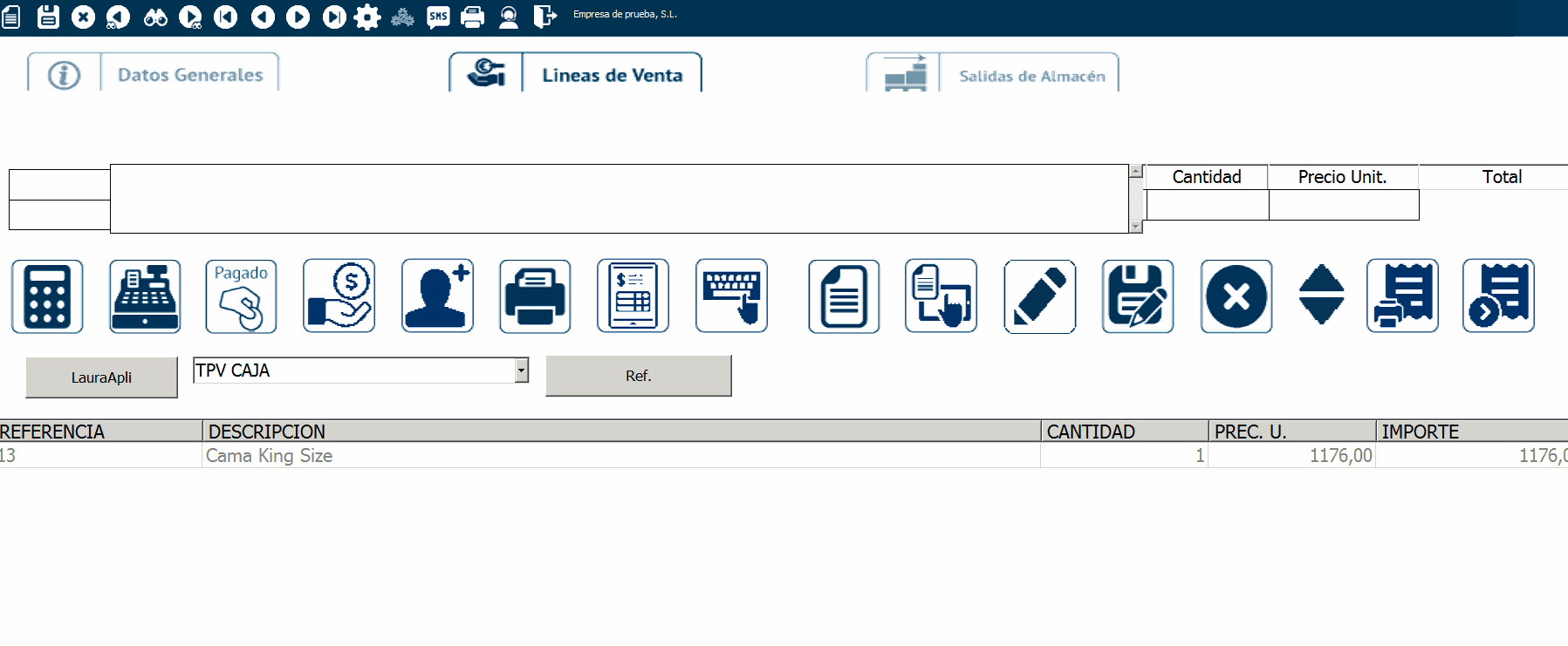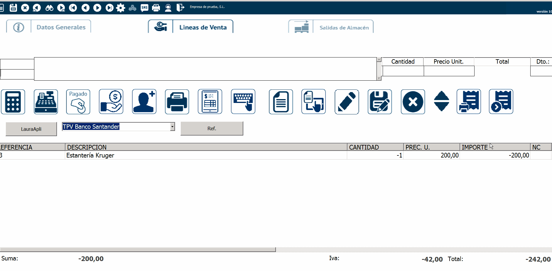 El importe debe ser negativo, por tanto las líneas del ticket deben estar en negativo, puesto que se trata de una devolución. Recuerda que si llevas control de almacén, deberás poner la cantidad en negativo, para que se realice el movimiento de almacén pertinente.