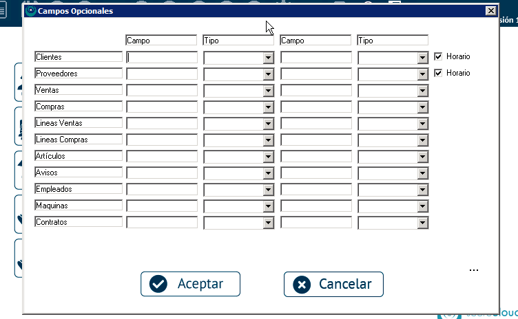 Secre te da la posibilidad de crear campos opcionales en distintas pantallas del programa, de modo que podrás trabajar con datos más específicos a tu empresa y que no están incluidos por defecto el programa.