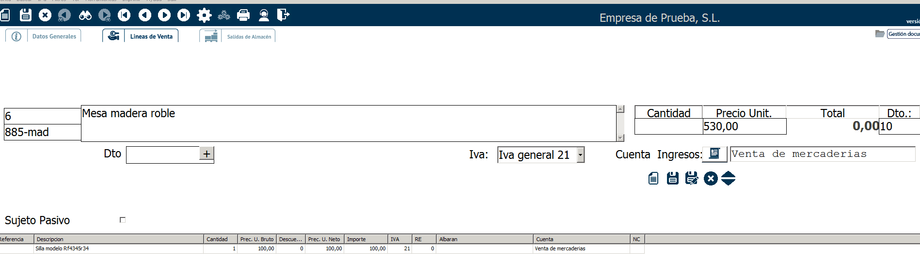 - Artículos y Líneas de Venta o Líneas de Compra.