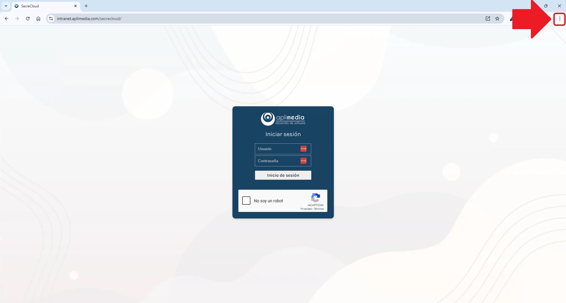 Abre Chrome y ve la página web secrecloud.aplimedia.com