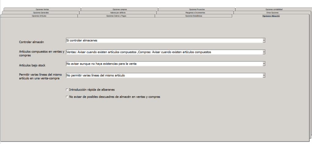 A la hora de configurar el funcionamiento de tu almacén cuentas con varias opciones que determinarán el comportamiento del programa al realizar determinadas acciones que pueden afectar a tu stock.