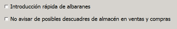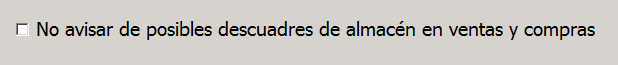 Por último, tienes la opción de marcar la casilla No avisar de posibles descuadres de almacén en ventas y compras: hay ocasiones en las que, en función de los pasos que demos y la forma de trabajar, el programa emite avisos de posibles descuadres de almacén. Si tienes controlada la razón por la que emite esos avisos y estás seguro/a de que no es ningún error tienes la opción de marcar esta casilla.