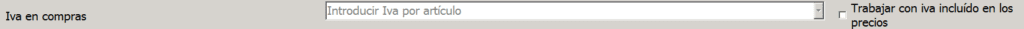 Además, a la derecha, tienes la opción de marcar la casilla «Trabajar con IVA incluido en los precios«, esto implica que el precio de compra que tenemos en la base de datos de artículos es ya con IVA incluido. Así, el programa calcularía la base imponible en función de este precio.