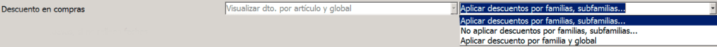 Además, a la derecha podemos escoger si queremos aplicar descuentos por familias y subfamilias, en cuyo caso solo nos aplicaría estos y no nos aplicaría descuentos globales en caso de tenerlos. Tenemos la opción de no aplicar estos descuentos por familias y subfamilias, y en este caso se aplicarían descuentos globales en caso de tenerlos. Y la opción de aplicar tanto descuentos por familia como descuentos globales.