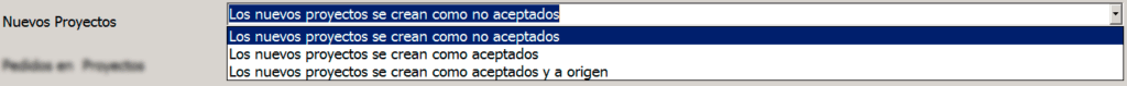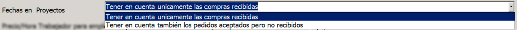 Este parámetro de Fecha en proyectos te permite escoger si el programa, a la hora de calcular los costes del proyecto, tendrá en cuenta únicamente los pedidos recibidos o si, por el contrario, queremos que tenga en cuenta los pedidos aceptados pero no recibidos.