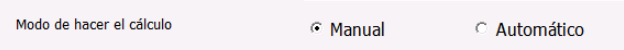 - Modo de hacer el cálculo: a elegir entre manual o automático.