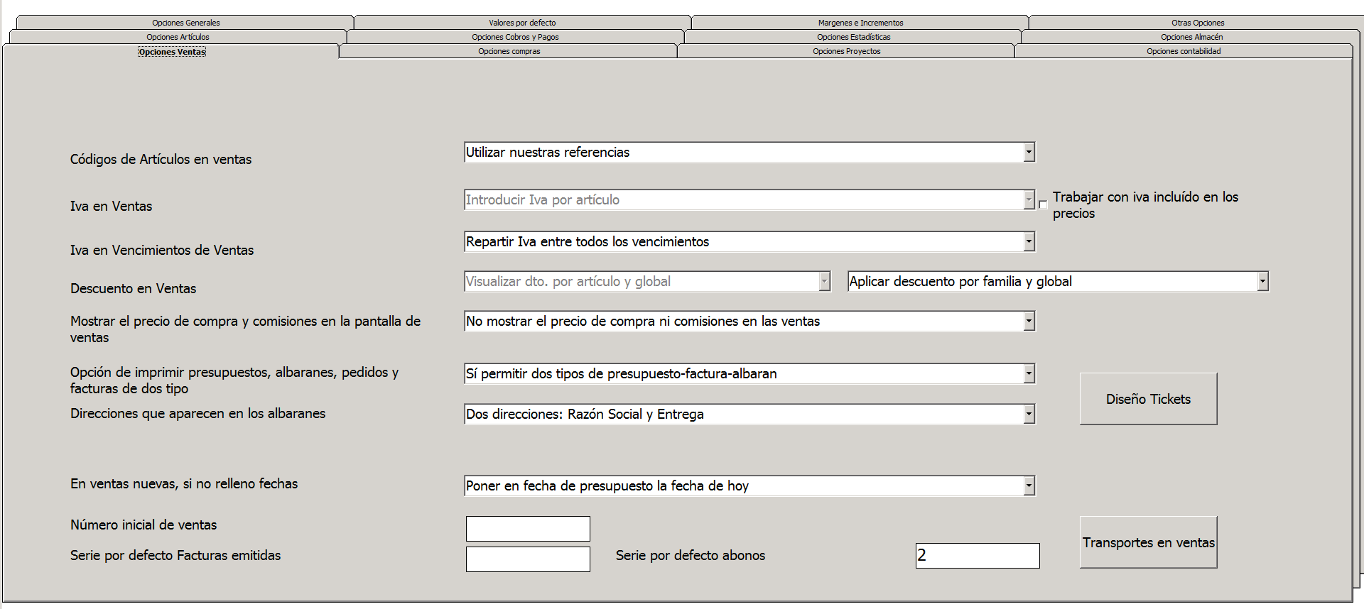 Vamos a ver con más detenimiento las opciones que tenemos para configurar los parámetros de ventas.