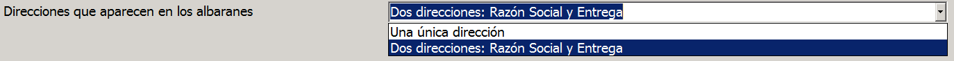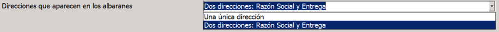 Si escogemos «Dos direcciones: Razón Social y Entrega» el programa enviará ambas al formato de impresión. Si escogemos «Una única dirección» no importa como sea tu formato, el programa solo enviará la dirección fiscal a la hora de imprimir y generar los documentos.