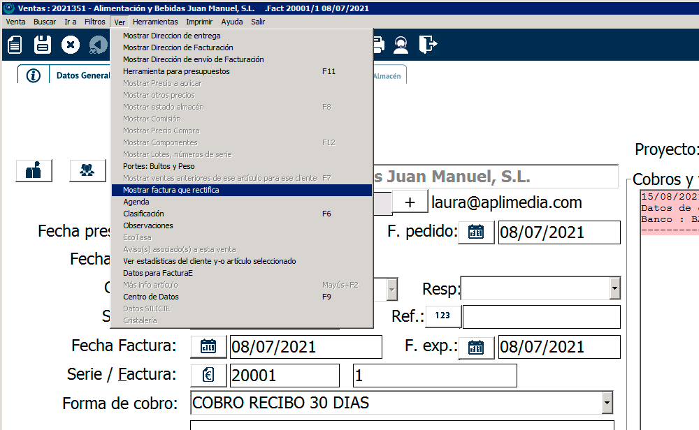 Para ello, desde la venta, ve a Ver>Mostrar factura que rectifica.