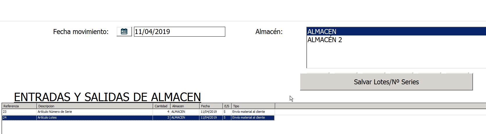 Cuando ya hayamos seleccionado los números de serie y/o lotes tendremos que hacer lo mismo que en Compras: Aceptar y hacer click en Salvar Lotes/NºSeries: