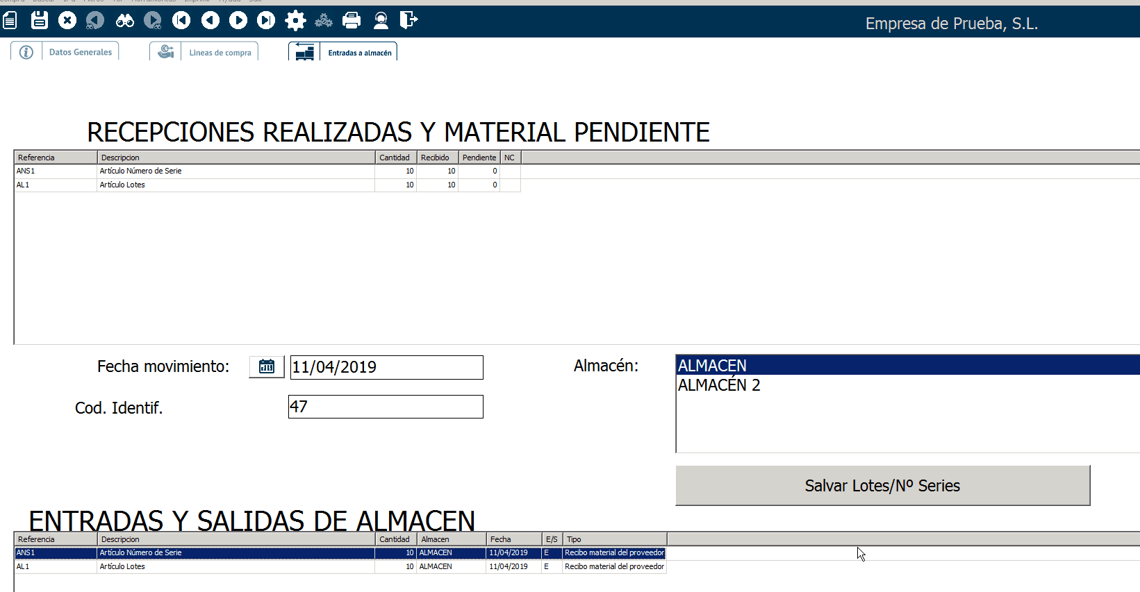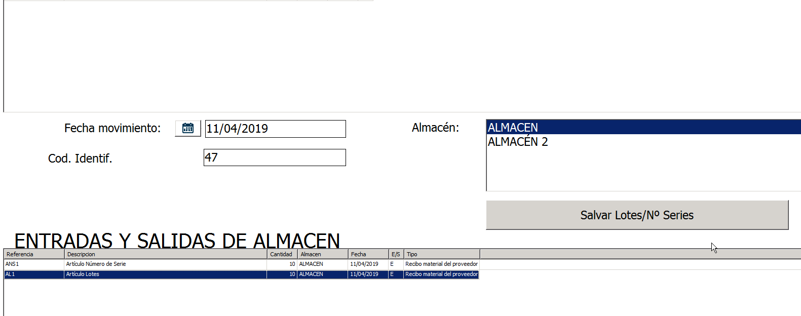 Ahora tendrás que hacer click en Salvar lotes / Nº Series. Es imprescindible para guardar correctamente los números de serie introducidos.