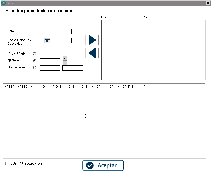 A la hora de introducir números de serie tenemos dos opciones.