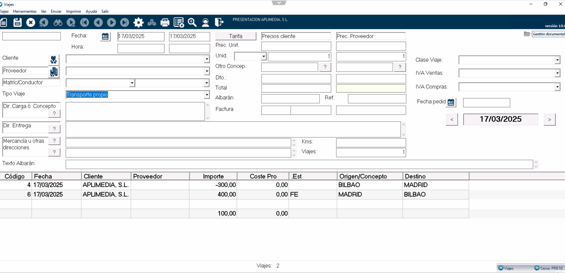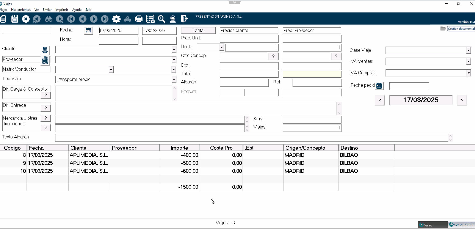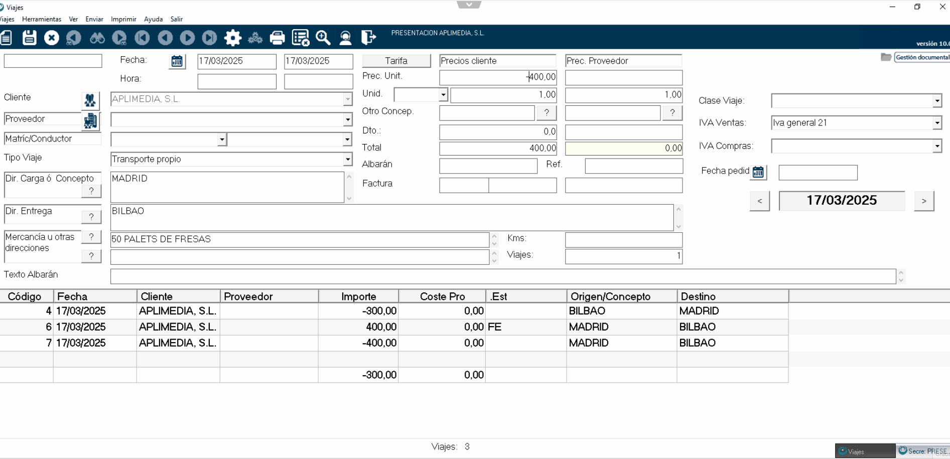 Lo único a tener en cuenta, es rellenar el precio del viaje con el importe negativo. Una vez importados, los facturaremos de la forma habitual.