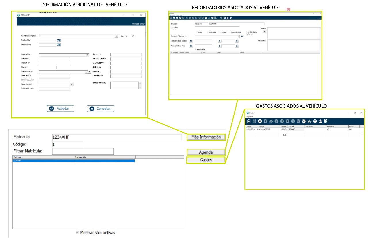 Cuando ya tengas dados de alta todos tienes la posibilidad de complementar esta información. Si abres el apartado de Más información, habiendo seleccionado una de las matrículas, puedes registrar fecha de alta, transportista asociado….