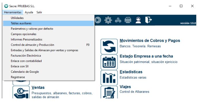 Para la creación de estos, desde la pantalla principal de Secre, ve a Herramientas>Tablas Auxiliares: