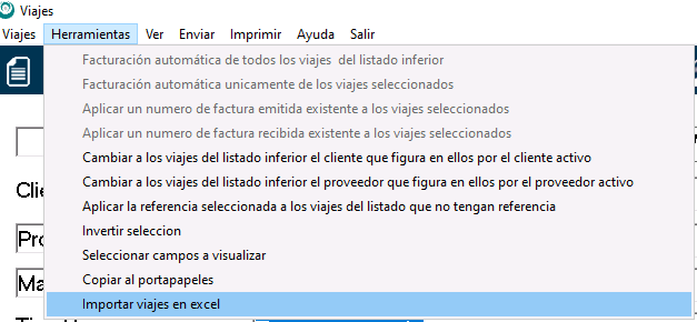 Una vez dentro del módulo, ve al menú Herramientas>Importar Excel de Viajes.