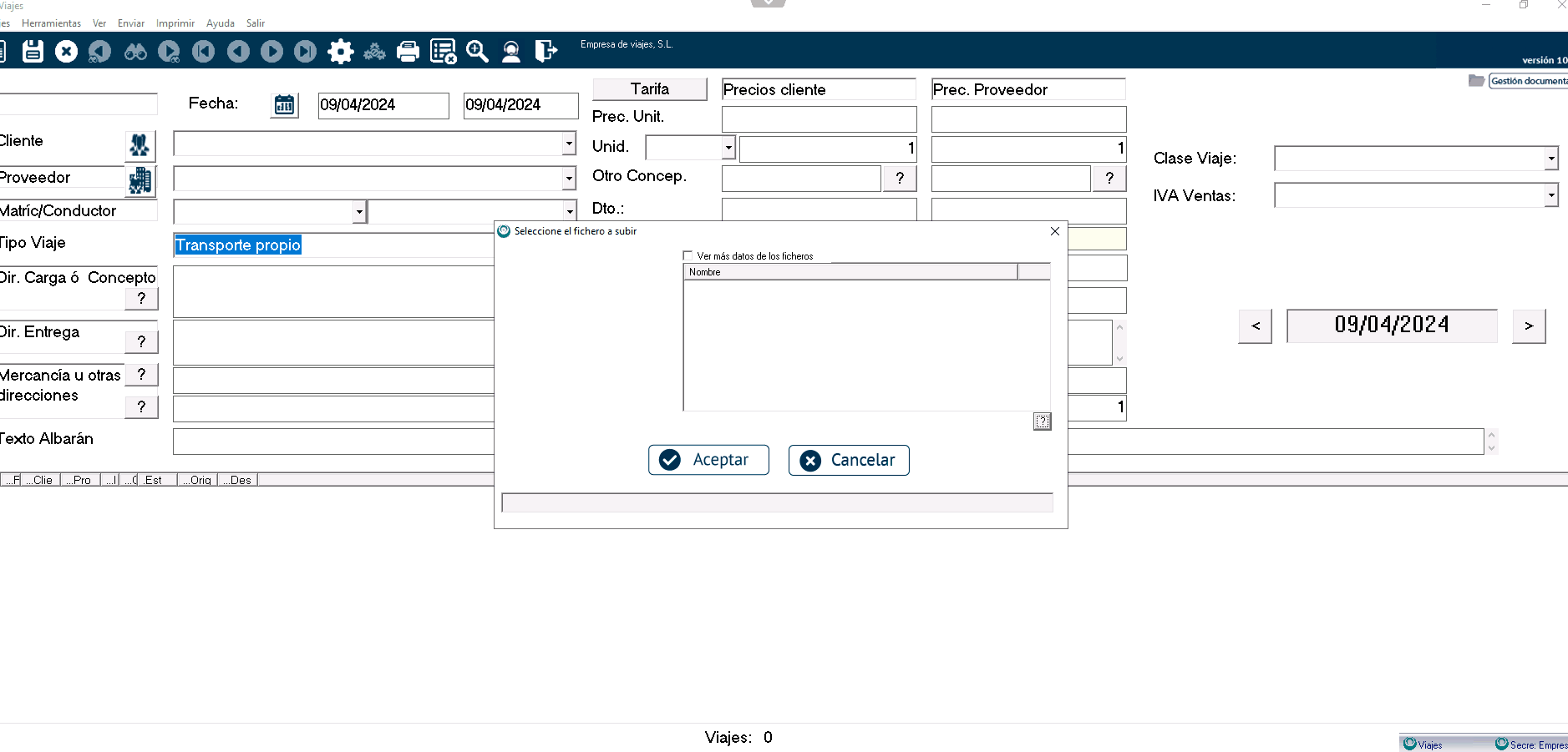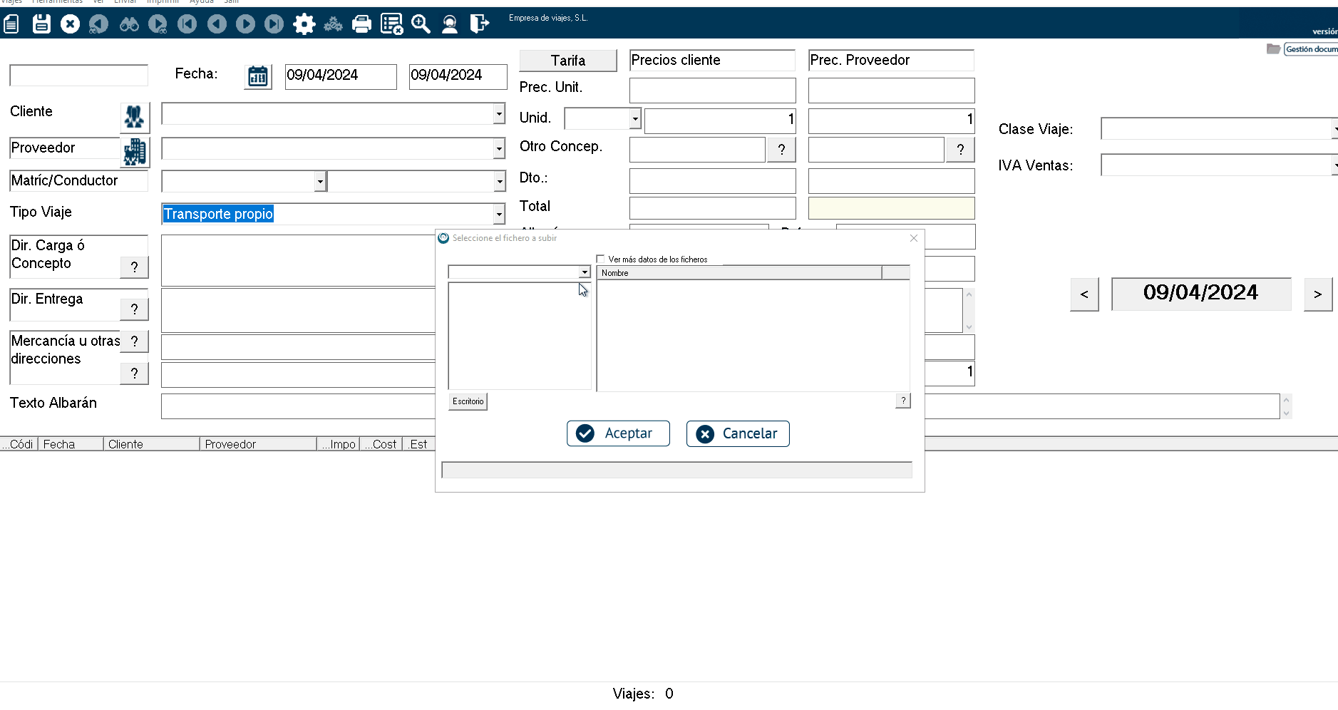 Si accedes a Secre con la opción Remote, deberás ir a Herramientas>Importar viajes en excel y buscar el fichero con el explorador de ficheros.